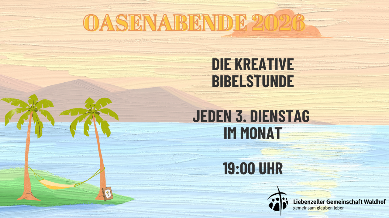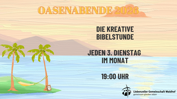 Einmal im Monat laden wir zu unserem Format "Oasenabend" ein. Jeden dritten Dienstag im Monat ab 19 Uhr gibt es unsere kreative Bibelstunde.